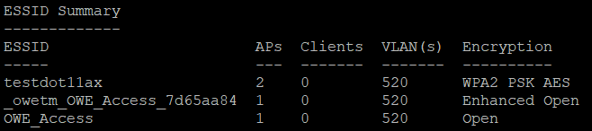 In the below example, the actual SSID created for OWE is “OWE_Access” that automatically creates a hidden SSID : “_owetm_OWE_Access_7d65aa84”.